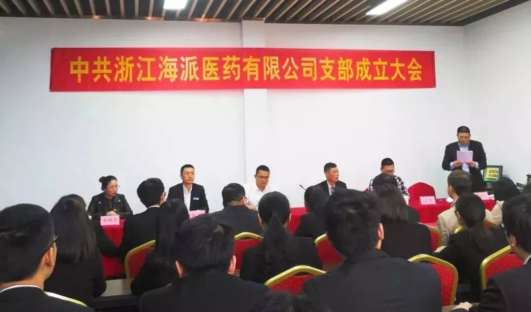 4月19日上午,浙江海派醫(yī)藥有限公司召開黨支部成立大會,公司董事長、黨支部書記張敬群、總經(jīng)理張翔、全體黨員、職工代表等40多人參加會議,南白象街道黨工委書記邱忠瑜、副書記王瓚、甌海區(qū)委組織部兩新科負責人金佩潔蒞臨指導。