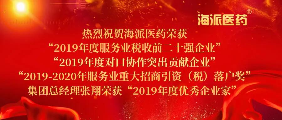 在此次會議中,海派醫(yī)藥榮獲「2019年度服務(wù)業(yè)稅收前二十強(qiáng)企業(yè)」、「2019年度對口協(xié)作突出貢獻(xiàn)企業(yè)」、「2019-2020年服務(wù)業(yè)重大招商引資(稅)落戶獎」,集團(tuán)總經(jīng)理張翔榮獲「2019年度優(yōu)秀企業(yè)家」稱號。